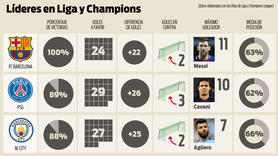 新赛季开始以来,巴萨战绩彪炳,在西甲和欧冠赛场都是高奏凯歌,西班牙《每日体育报》指出,虽然巴黎和曼城的状态也是非常的出色,但是他们都无法和巴萨相提并论,因为巴尔韦德的球队是欧洲五大联赛里,唯一一支在联赛和欧冠都保持100%胜率的球队!