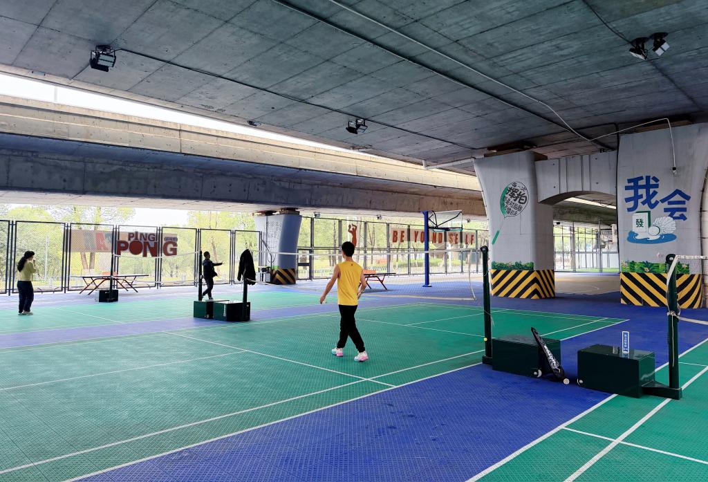 周末,家住附近小区的韩华和丈夫来到这里切磋羽毛球。“小区里几乎没有能打羽毛球的空地,商业球馆收费又比较高,现在过个马路就能来打球,不用管晴天雨天,十分方便。”韩华说。
