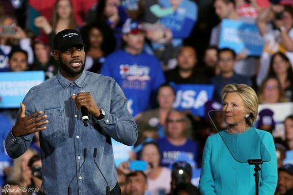 骑士当家球星勒布朗-詹姆斯是希拉里的忠实支持者,上周末,他曾亲自为希拉里站台拉票。而更早的时候,詹姆斯还因为“录音门”事件怒喷过川普。