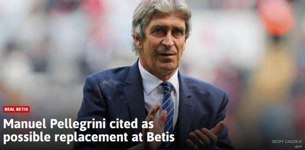 最初的消息是从塞维利亚电台传出的,之后包括阿斯报在内的多家西班牙媒体也进行了报道。目前皇家贝蒂斯在西甲前11轮战罢以3胜2平6负积11分列积分榜第14位,尤其是最近5轮输掉4场,使得原主教练波耶特帅位不稳,俱乐部方面有意更换主帅,而前曼城队主帅、现执教河北华夏幸福的佩莱格里尼则是新帅的候选人之一。