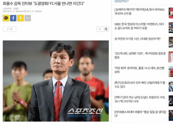 苏宁获得了明年亚冠联赛的出场资格,可以与首尔队碰面。崔龙洙直言希望和首尔队对战:“如果苏宁和首尔比赛的话,平局当然是从我的个人心情而言最好的结果,但我们都是职业足球人,只有取胜这一个目标。相信黄善洪教练的想法也与我一致。”