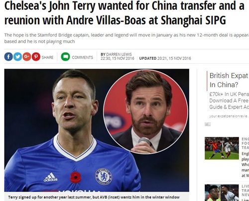 特里的未来在哪?英国媒体《镜报》披露,很有可能是中超,在此之前,上海曾有一家中超球会给切尔西队长一份2年期、年薪1200万英镑的肥约,但特里念及旧情,拒绝了中超的合同,最终低薪与切尔西签订了一份为期一年的合同。而今,特里再度来到十字路口,此次邀请特里的是上海上港,前切尔西博阿斯刚刚接替埃里克森,拿起该队的教鞭,希望合同即将到期的特里来驰援自己。