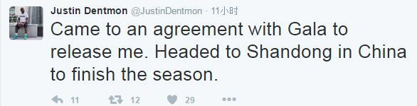 在自己的推特上,邓特蒙透露,自己已经与加拉塔萨雷解约,他将前往山东,尽快与球队会合。