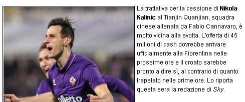 从上个月开始,卡利尼奇就不断与权健传出绯闻,但是谈判过程却一直很不顺利。先是佛罗伦萨方面索要5000万欧元的转会费,后来又曝出卡利尼奇拒绝权健开出的合同。不过,按照“天空体育”的说法来看,这两个难题似乎都已经被解决。首先,权健开出的4500万欧元的转会费,距离佛罗伦萨的要求已经非常接近;其次,卡利尼奇开始重新考虑自己的选择,似乎权健也已经改善了给他的合同。