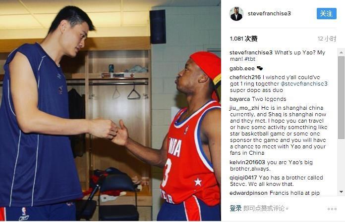 弗朗西斯在INS上晒出了一张姚明的旧照,看起来是他初加盟火箭时的照片,照片中的小巨人显得很是青涩。在INS上,弗朗西斯深情地写道:“姚,你现在好吗,我的兄弟。”