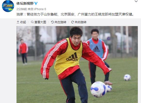 北京时间1月13日,据天津电视台《体坛新视野》栏目报道,广州富力边锋王晓龙将加盟中超新军天津权健队。