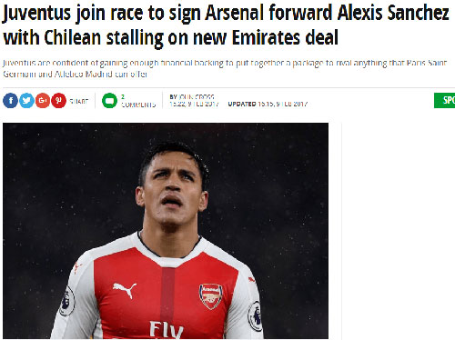 尤文开25万镑周薪挖角桑切斯 超级大腿留不住?