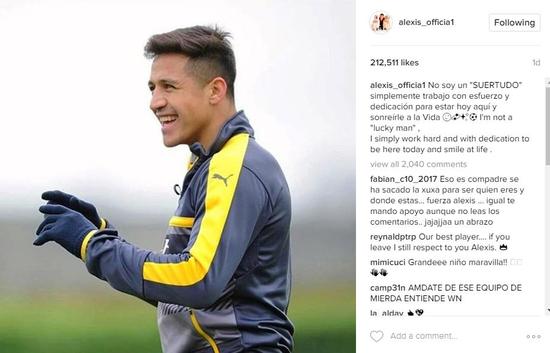 输给拜仁前,桑切斯的情绪就不时产生波动,4-0大胜斯旺西的比赛中被换下场时当众甩脸色;不和随队出征的球迷打招呼;3-3逼平伯恩茅斯赛后怒摔手套……但最近的几节训练课,桑神的心情大好,笑容经常挂在脸上。近日桑切斯在INS上发文:“我不是一个幸运的人。我只是努力工作,效忠于我现在效力的俱乐部,笑对生活。”《太阳报》称这条状态肯定能给枪手球迷吃下定心丸。
