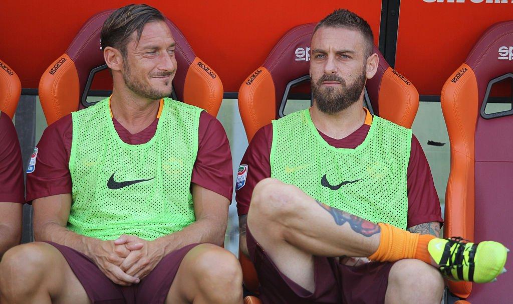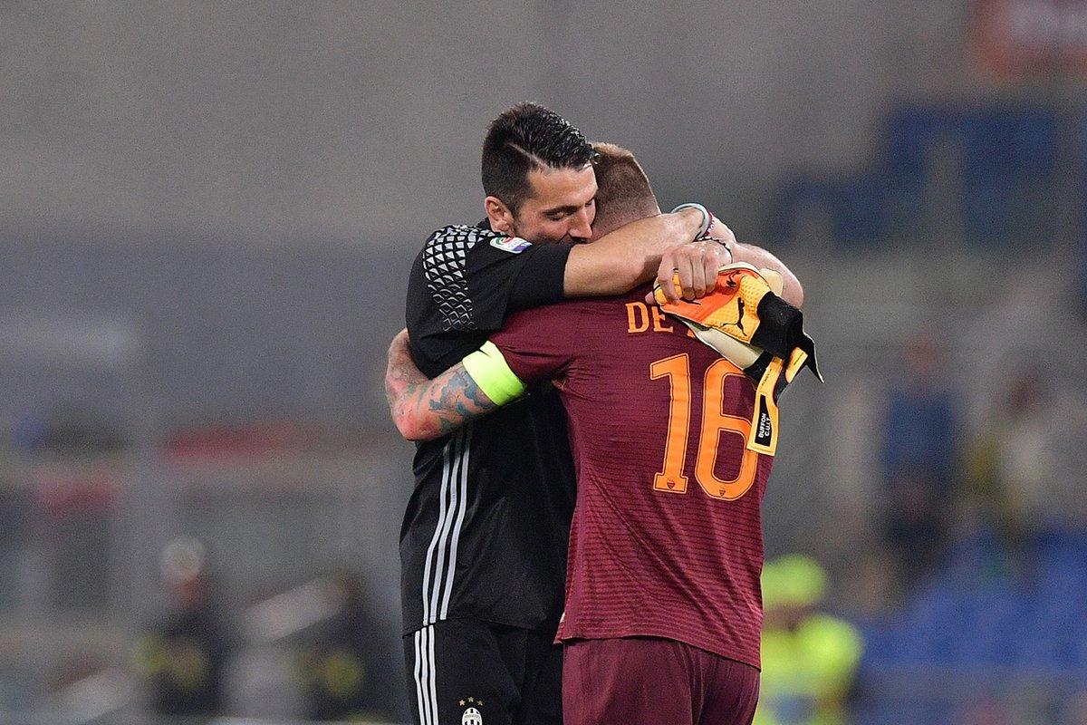 托蒂成为替补在板凳上观战,罗马场上队长德罗西击败布冯,为球队进球。这是队长和队长之间的对话,也是意大利世界杯冠军一代的对话。