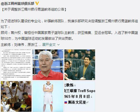 浙江稠州银行男篮教练组调整公告