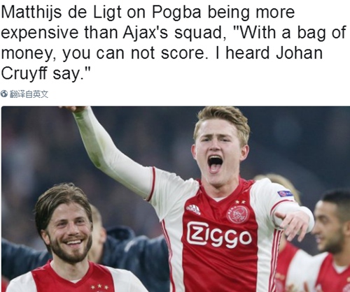 在谈到对手的高身价时,阿贾克斯17岁后卫德里赫特表示:“克鲁伊夫曾说过‘我从没看过一袋钱能进球。’”