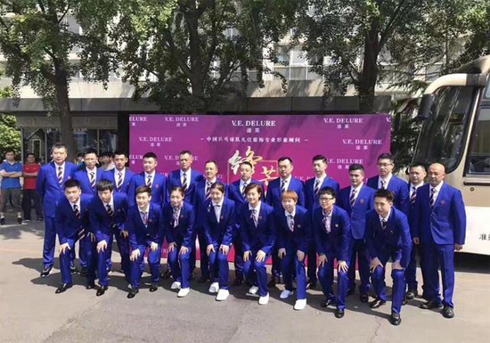 今天的出征仪式相当隆重,国乒全队分别穿着西服和队服拍摄了出征全家福。“每一次出征前有一个欢送的仪式,还是跟一般的比赛不一样。特别是大家穿上统一的西服、队服,有一个全新的面貌。”刘指导说。
