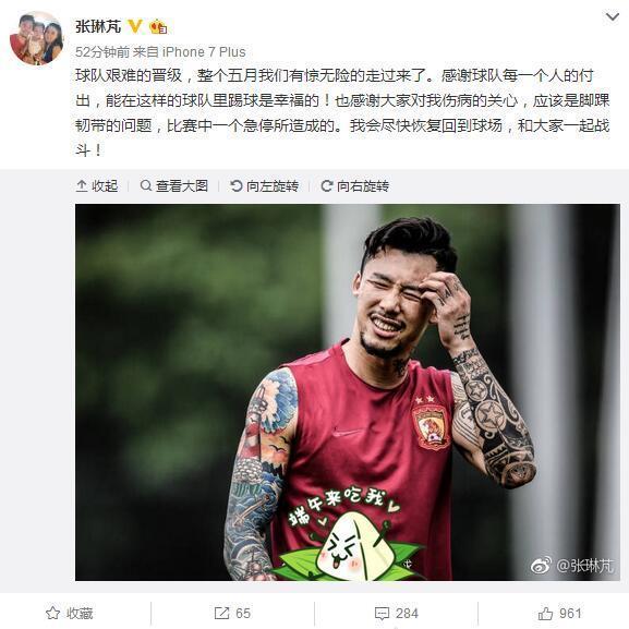 前天晚上亚冠恒大对阵鹿岛鹿角的比赛第34分钟,当时恒大是0:1落后,球队也是遭遇了一个不好的消息,张琳芃在无对抗的情况下倒在了场地上,随后队友做出换人动作,张琳芃也是被抬下场,比赛结束过后,张琳芃也是发微博告诉关心他的人:他是在比赛中一个急停造成的,伤情是脚踝韧带受伤。作为恒大和国家队的主力右后卫,这个消息真的不是好消息!