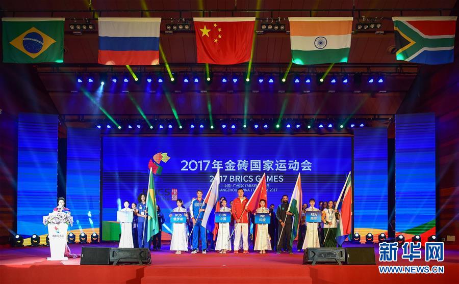 6月17日,2017年金砖国家运动会开幕式在广州市举行。来自巴西、俄罗斯、印度、南非和中国的近300名运动员报名参赛,赛事共设篮球、排球和武术三个大项、10个小项。