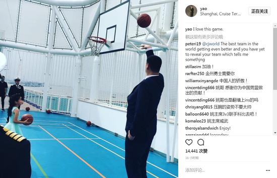 活动期间,姚明和爱女姚沁蕾在邮轮的篮球场上练起了投篮。从姚明在社交网络上晒出的照片来看,姚明尽管是西装革履现身,而且投篮时是单手,但职业球员出身的他,举手投足之间还是那么标准。巨大的邮轮上,也留下了姚明飒爽的英姿。