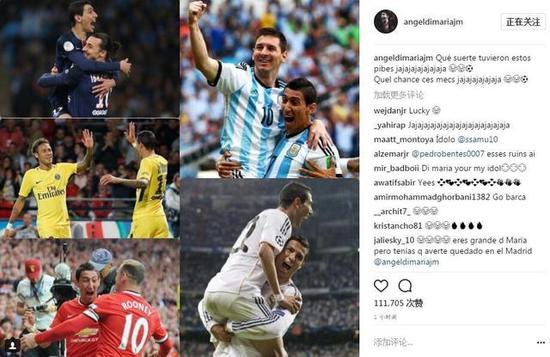迪马利亚晒与5巨星合影:能当我队友 他们真幸运
