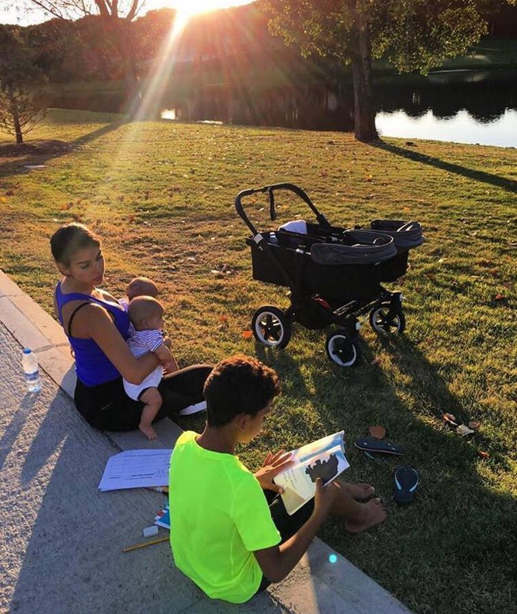 当地时间10月6日,C罗在ins上晒出一张家庭照片,照片中怀孕的女友乔治娜怀抱出生不久的龙凤胎,目光看着旁边正在看书的长子迷你罗,四人在阳光下显得格外温馨。