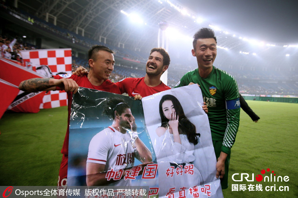 北京时间3月14日晚,权健主场4-2击败全北现代,帕托赛后谢场高举女神迪丽热巴海报。