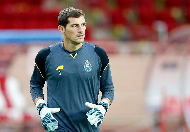 ↑2017年9月25日,波尔图队门将卡西利亚斯在训练中。