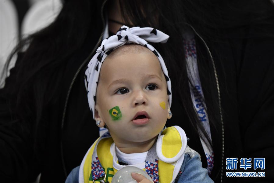 7月6日,一名巴西队的小球迷在比赛前。当日,在喀山进行的2018俄罗斯世界杯四分之一决赛中,巴西队对阵比利时队。 新华社记者贺灿铃摄