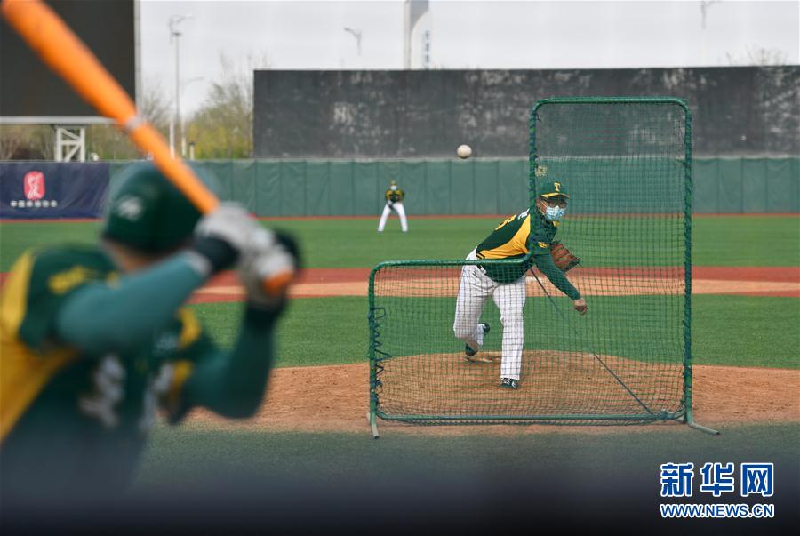4月7日,天津安达雄狮棒球队球员在训练中。 近日,随着国内新冠肺炎疫情防控形势向好,天津市体育局组织各运动队教练员、运动员在训练基地进行封闭训练,陆续恢复训练备战工作。 新华社记者李然摄