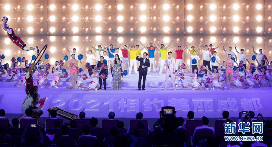 8月18日,演员在倒计时一周年活动现场表演。 当日,成都大运会组委会在成都市广播电视台演播大厅举行第31届世界大学生夏季运动会倒计时一周年活动。 新华社记者江宏景摄