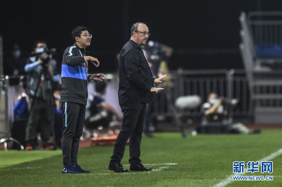 9月14日,大连人队主教练贝尼特斯(右)在比赛中。 当日,在2020赛季中国足球协会超级联赛第一阶段(大连赛区)第11轮比赛中,大连人队以1比1战平上海绿地申花队。 新华社记者 潘昱龙 摄