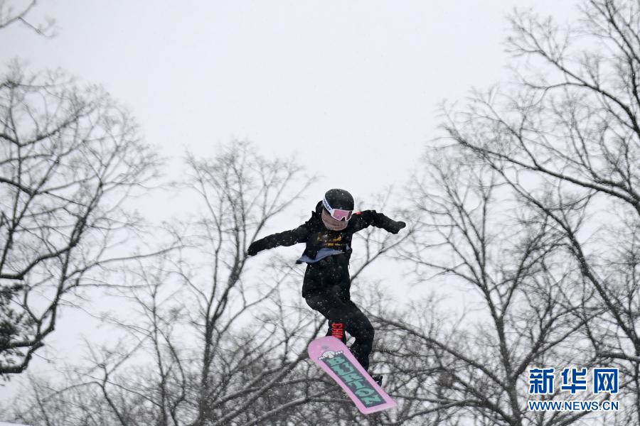 当日,2020-2021全国单板滑雪大跳台和坡面障碍技巧锦标赛在吉林长白山万达泰格岭地形公园开赛。