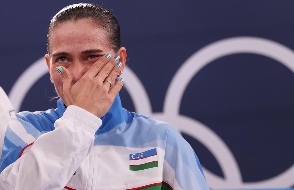 7月25日,丘索维金娜在比赛后流泪。新华社记者 曹灿 摄