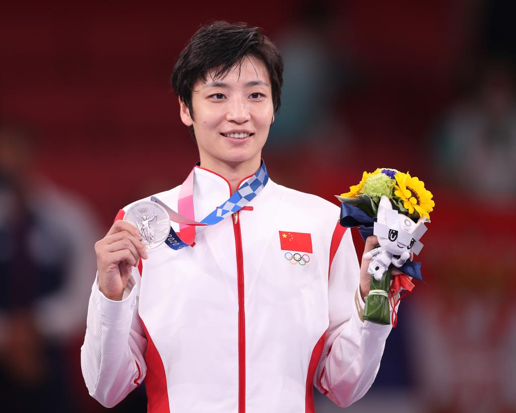 当日,在东京奥运会空手道女子组手61公斤级决赛中,中国选手尹笑言不敌塞尔维亚选手普雷科维奇,获银牌。