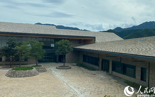 人民网北京9月23日电 (记者杜燕飞)初秋,记者一行走进延庆冬奥村,一座座依山而建的半开放中式庭院散落山林间;每一座庭院的天井中,就地取材的原生态石块砌筑成了树木的“安乐窝”;施工过程中开挖出来的碎石,直接用于建筑外墙的“石笼墙”装饰,与门廊的原木色门窗相呼应……