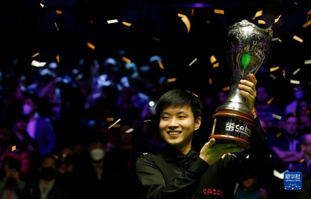 当日,在英国约克举行的2021斯诺克英国锦标赛决赛中,中国选手赵心童以10比5战胜比利时选手布雷切尔,夺得冠军。