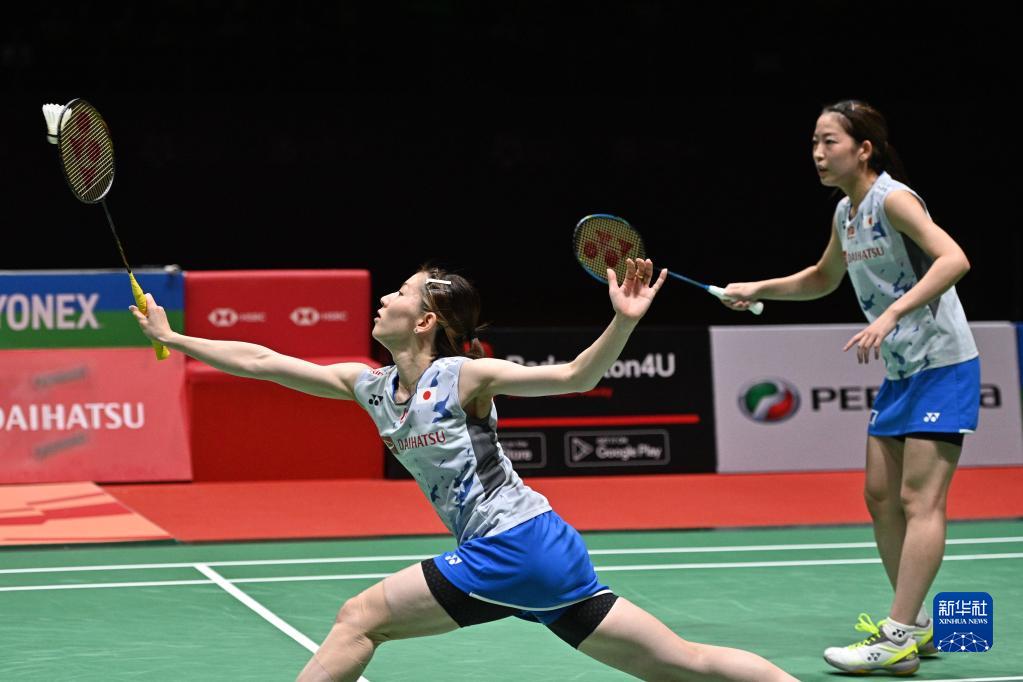 7月10日,松山奈未/志田千阳(左)在比赛中。新华社发(张纹综摄)