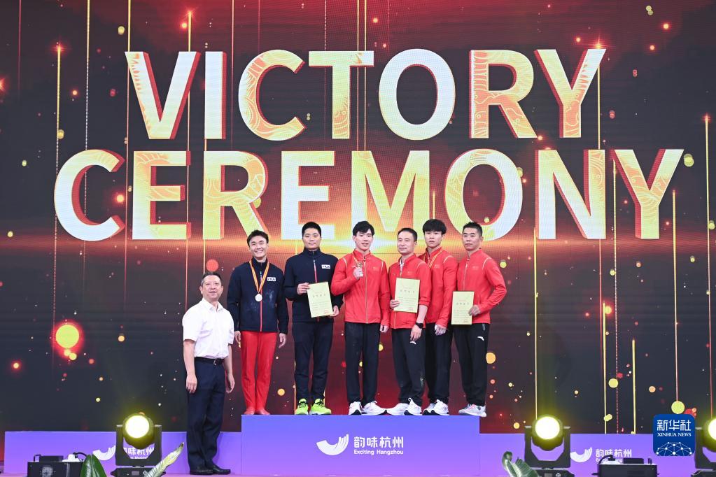 9月6日,冠军张博恒(右四)在颁奖仪式上。新华社记者 黄宗治 摄