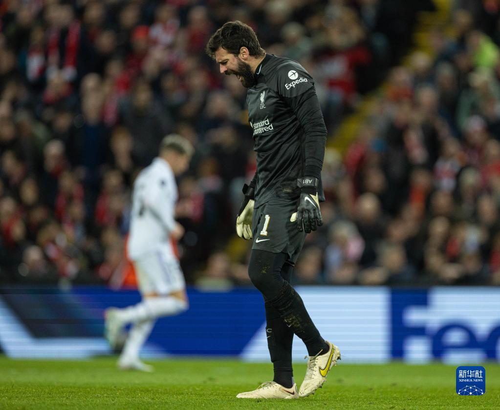 2月21日,利物浦队门将阿利松(右)在比赛中。新华社发