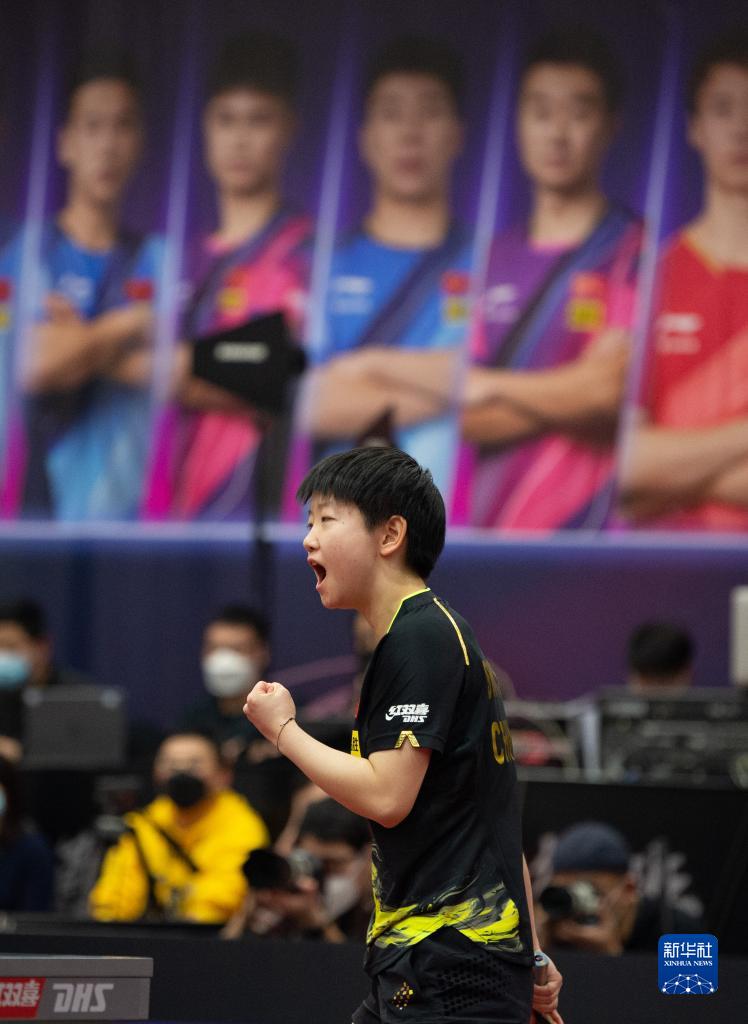 2月23日,孙颖莎在比赛中庆祝得分。新华社记者 陈钟昊 摄