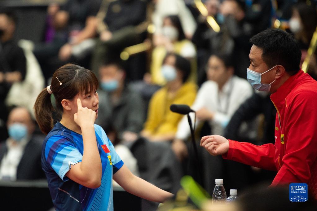 2月23日,陈幸同(左)在比赛间隙与教练交流。新华社记者 陈钟昊 摄