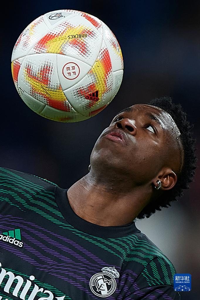 3月2日,皇家马德里队球员维尼修斯在比赛前热身。新华社发(帕布罗·莫拉诺摄)
