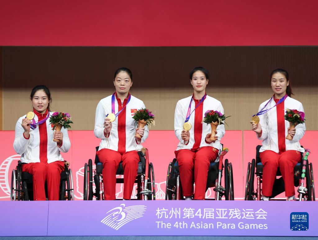轮椅击剑——女子花剑团体:中国队夺冠