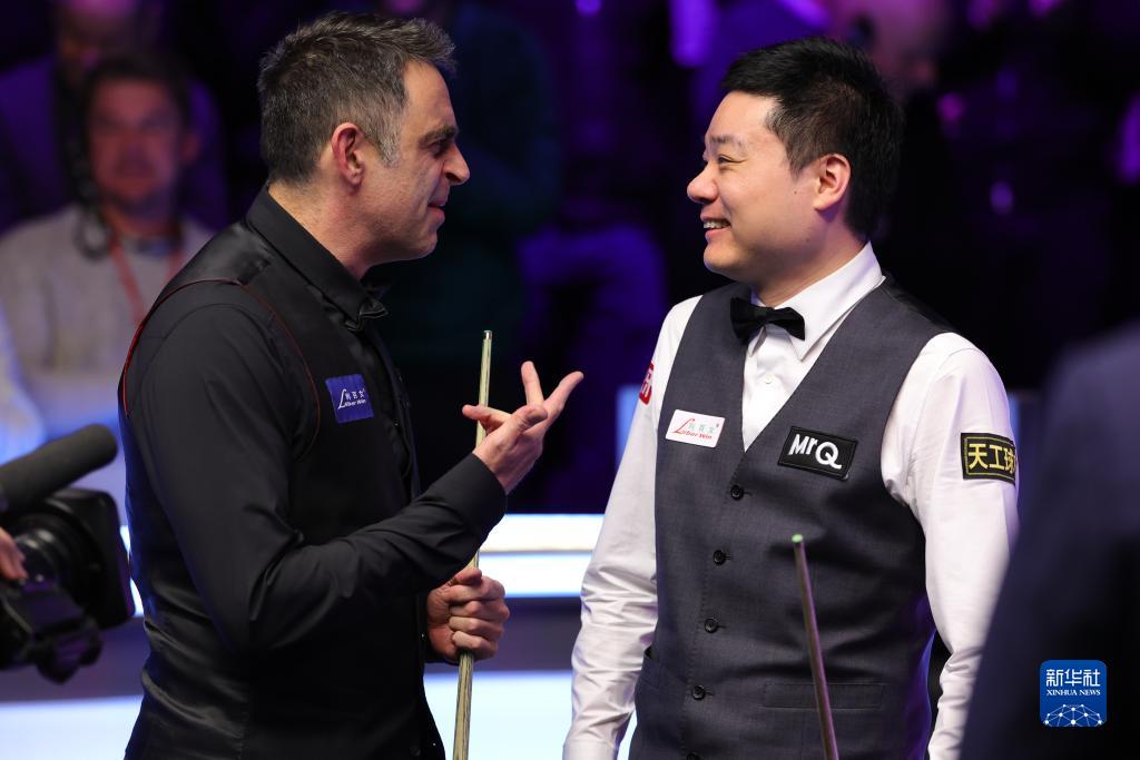 12月3日,丁俊晖(右)与奥沙利文在比赛后。新华社发(翟政摄)