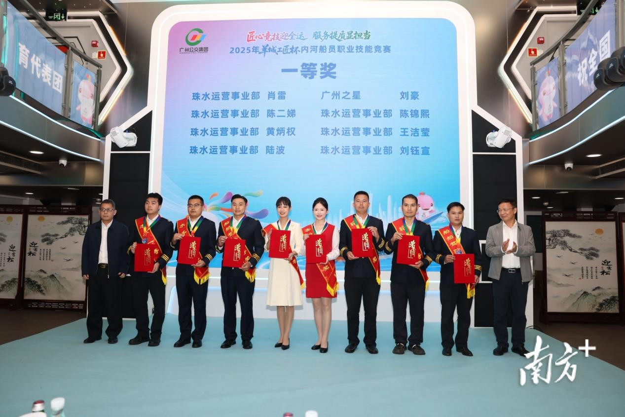 现场还举行了2025年“羊城工匠杯”船员职业技能竞赛颁奖仪式,表彰优秀技能人才,为保障全运服务夯实人才基础。竞赛以 “以赛促训、以赛提质” 为核心宗旨,聚焦全运会期间珠江游船客运保障与水上应急处置的核心需求,全方位锤炼船员队伍的专业硬功与服务软实力,为即将到来的全运会筑牢水上交通人才 “护城河”。