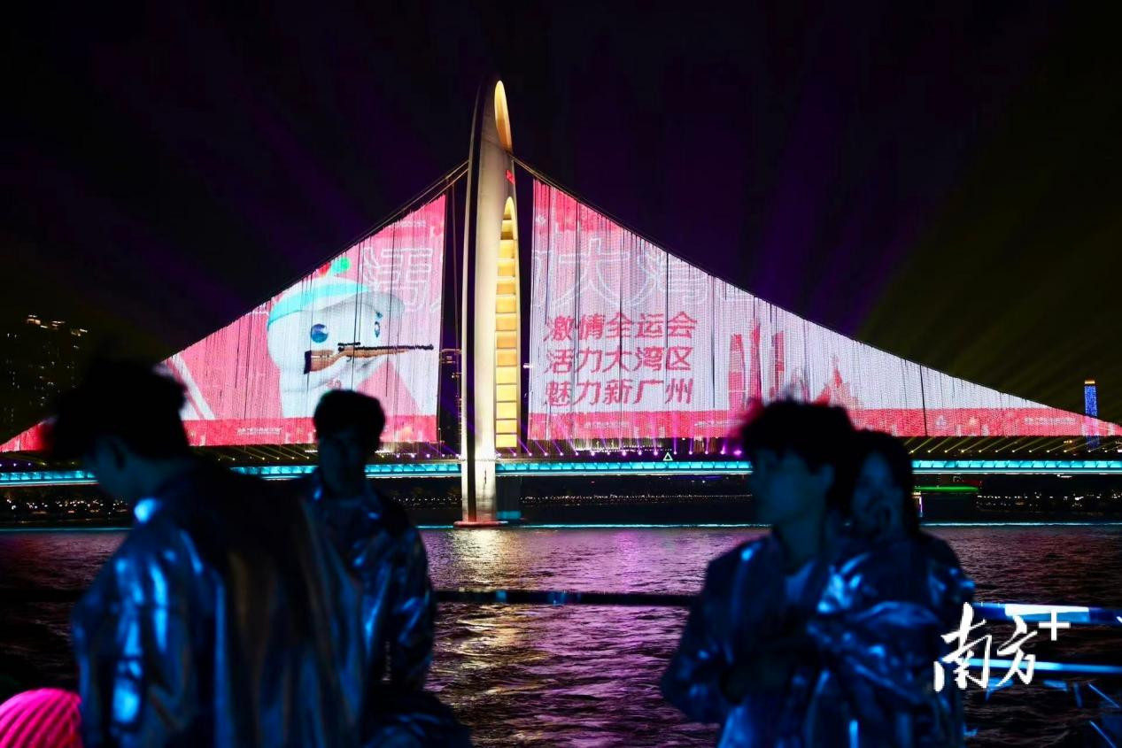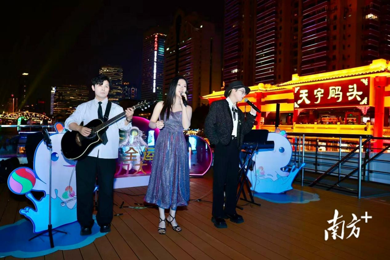 船上的观众们乘着游船,在歌声中饱览“一江两岸”的璀璨夜景,沉浸于十五运会即将到来的热烈氛围之中。广州公交集团客轮公司驾驶员肖雷表示:“每当这首歌响起,我都感到心潮澎湃。正如歌词中提到的‘跨越巅峰’‘赢得荣耀’,这也是我对十五运会的美好祝愿。”