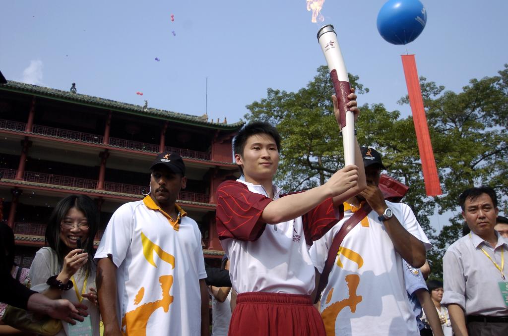 他同样作为火炬传递广州站第一棒火炬手