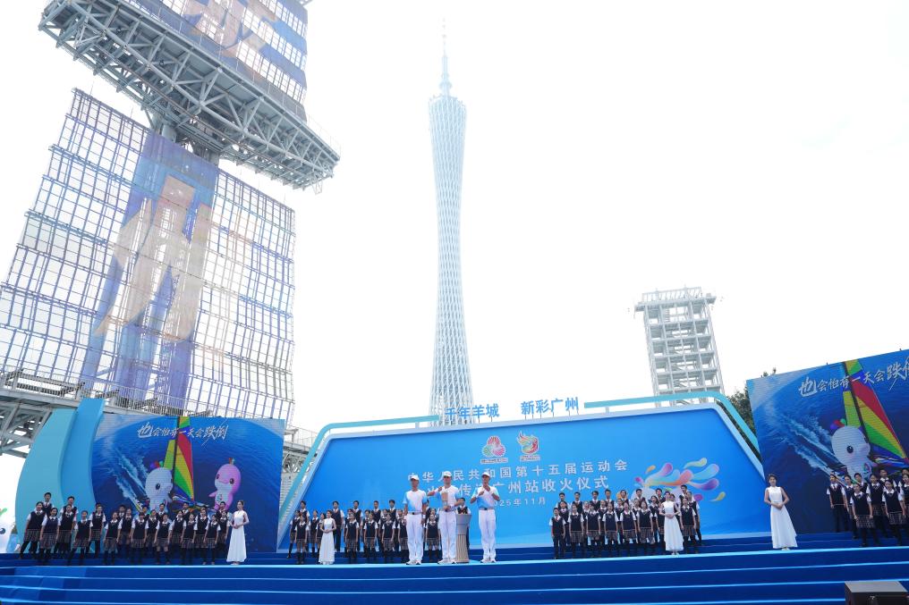 ↑第十五届全运会火炬传递广州站收火仪式现场。新华社记者 薛宇舸 摄