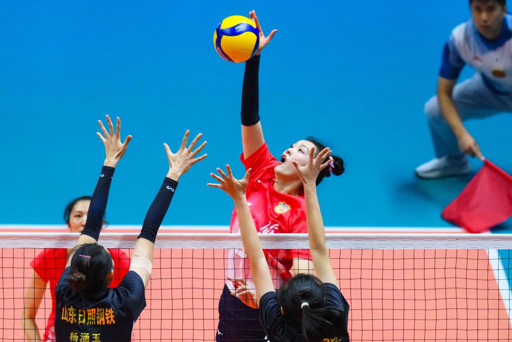 第一局江苏队就展现出强大的综合实力,全队多点开花,发球、拦网、扣杀环节全面占优。面对江苏队的犀利攻势,山东队的办法显得不是太多,很快就以15:25输掉首局。