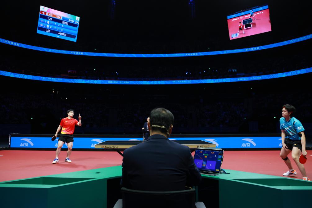 第四盘,王楚钦再度披挂上阵,对阵35岁的许昕。前者以11:8、12:10、11:8结束战斗,帮助北京队3:1战胜上海队夺冠。