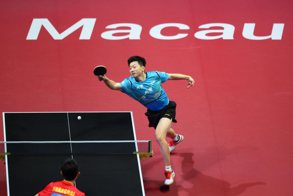 11月20日,北京队选手马龙在男单比赛中回球。新华社发(张金加摄)