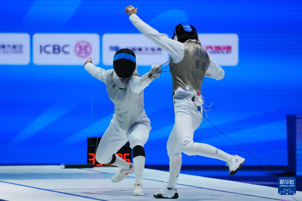 11月20日,福建队选手焦恩祺(左)和重庆队选手陈诗琳在比赛中。