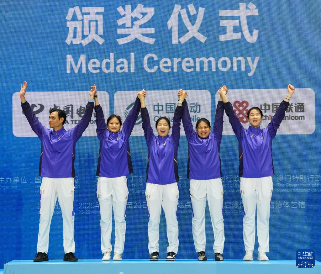 11月20日,福建队选手陈情缘(左一)在比赛后庆祝夺冠。