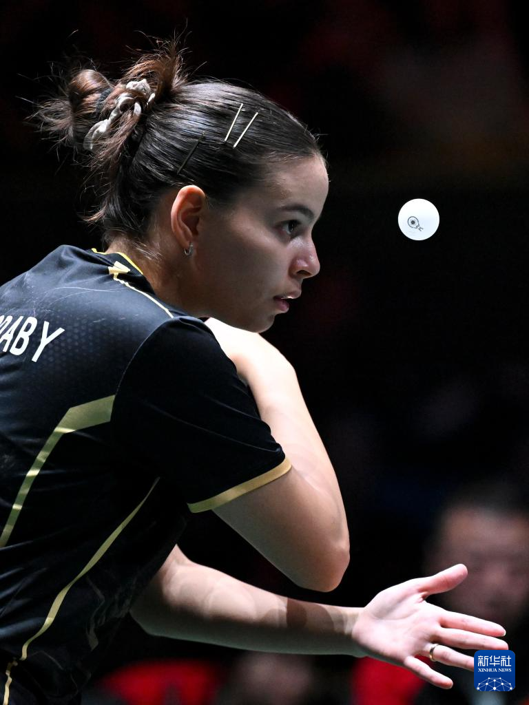 12月1日,埃及队选手马里亚姆·阿尔霍达比在女单比赛中发球。她0比3不敌中国队选手孙颖莎。